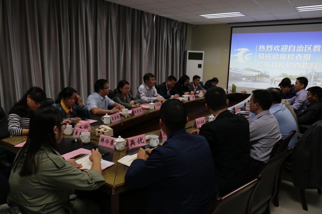2017年11月13日上午,由广西中医药大学党委副书记董塔健为组长,广西中医药大学学工处处长叶勇玲、钦州学院学工处处长裴以明为组员的自治区教育厅专家组到我校开展广西第二批易班共建高校易班建设验收检查工作。我校副厅级调研员张劲松教授、学工部(处)部(处)长唐壮东及相关部门负责人、易班学生工作站指导教师及工作站成员参加了会议。会议由张劲松调研员主持。