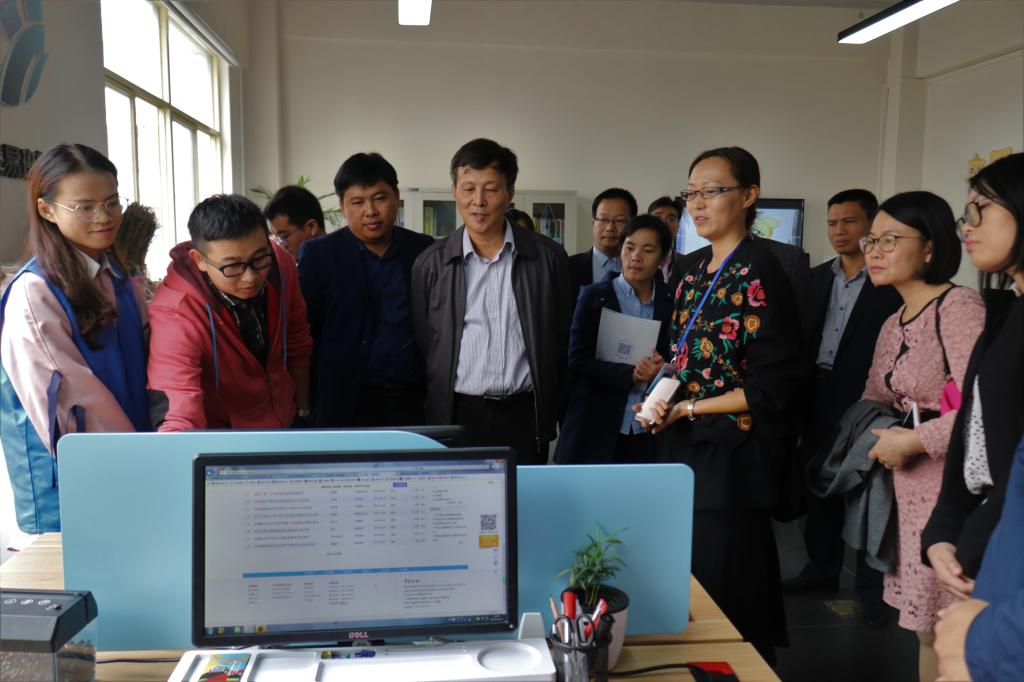 会后,自治区教育厅专家组及跟班学习人员参观了我校易班学生工作站及艺术学院易班学生工作站。