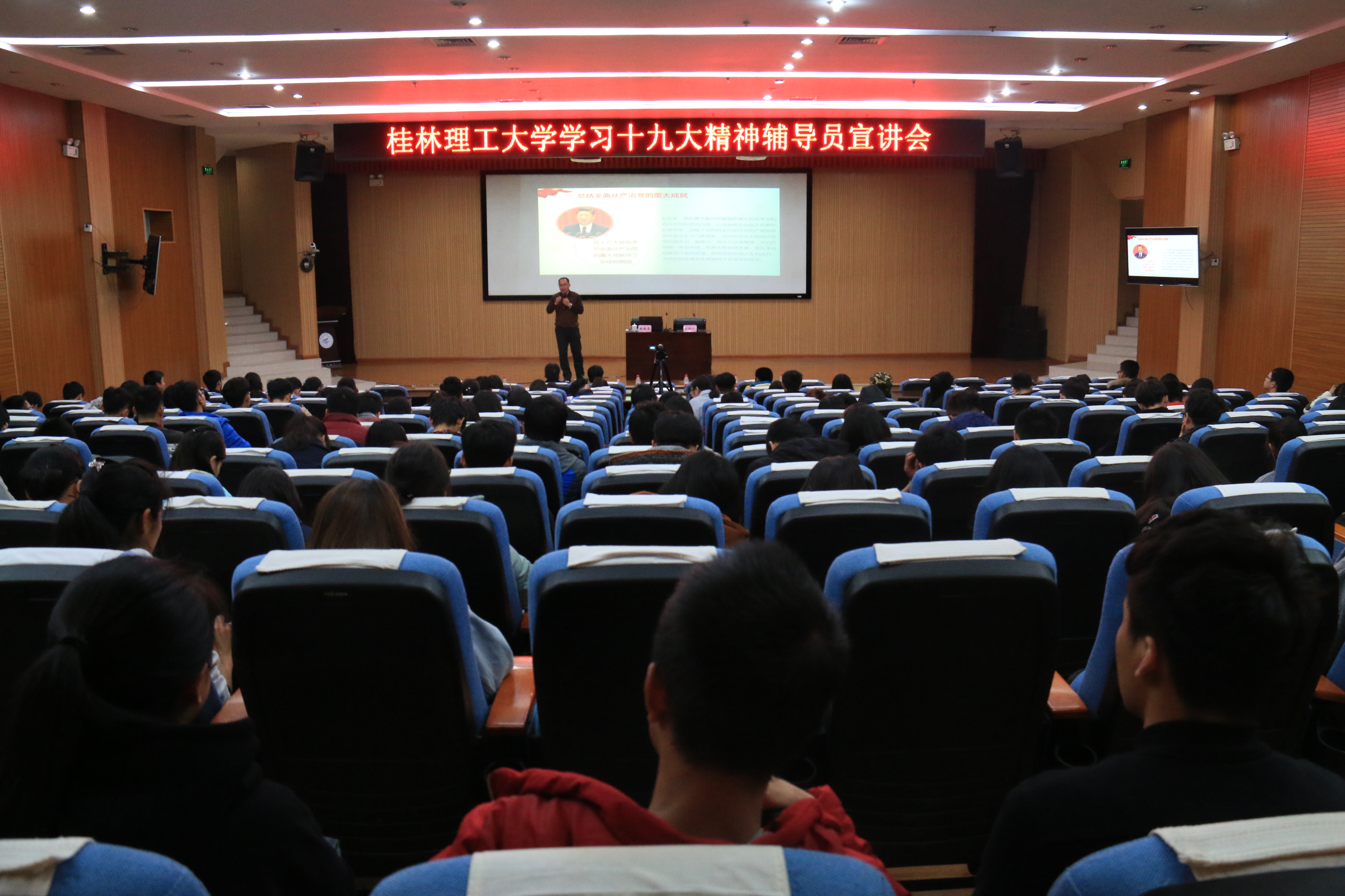 12月28日下午,党的十九大精神辅导员宣讲会第二场集中宣讲在雁山校区图书馆报告厅举行。地球科学学院党委副书记耿俊茂作主题宣讲,学工部副部长代武社出席并主持宣讲会,来自各学院250余名学生参加了活动。