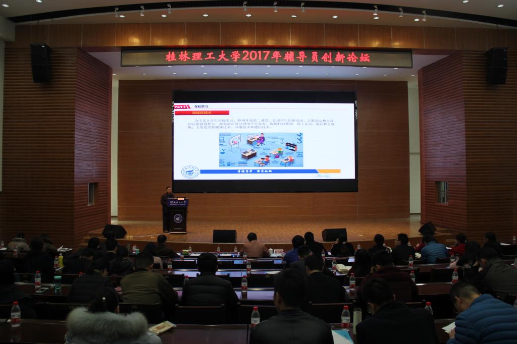 下午的创新论坛活动,由信息科学学院院长程晓辉教授和深信服信息科技有限公司徐磊为全体辅导员作题为《现代信息技术对学生工作的启示》及《探究学生工作的信息化之路》专题报告,为辅导员利用现代信息技术创新性做好学生工作打开了思路。2017年赴同济大学、中国矿业大学等8所高校跟班学习的8名辅导员分别作跟班学习总结汇报,分享跟班学习心得体会和跟班学习高校先进学生工作理念和工作经验。2016-2017学年优秀辅导员代表张萌萌、刘茜雯、唐红兵等3人作辅导员工作经验介绍。2017年全国辅导员工作优秀论文三等奖、全区辅导员工作优秀论文一等奖获得者孙巍就辅导员如何提升科研能力及论文写作水平作交流发言,论坛还遴选编印了64篇辅导员优秀工作论文进行书面交流。