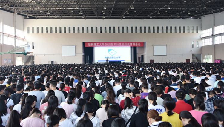 为进一步营造“学在桂工”的良好氛围,引导2018级新生更好地规划大学生活,树立远大理想和奋斗目标,9月12日上午,学校副厅级调研员张劲松在雁山校区体育训练馆为2018级新生作了题为“‘学在桂工’——故事里的故事”的入学教育报告。2018级全体新生及辅导员参加了报告会。