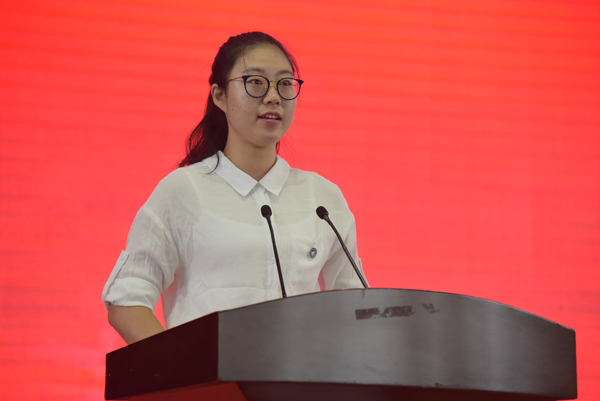 2018级本科生、旅游与风景园林学院史焓悦代表新生发言,她表达了自己对未来学习的畅想,同时也为未来大学四年拟了一份计划,表示要坚定自己的目标,敏而好学,勤于实践,为成为一个有家国情怀、创新精神、实践能力的卓越人才的目标而奋斗,为中国梦尽一份自己的力量。
