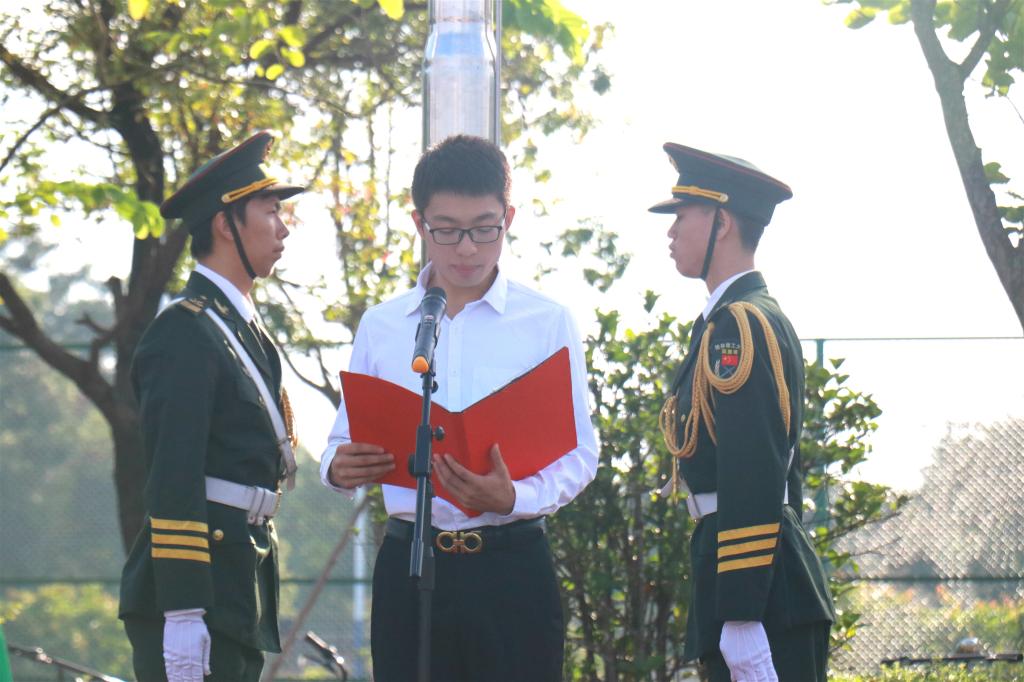 来自环境工程学院的王俊森同学在国旗下讲话中,以自身学习经历勉励在场的2017、2018级学弟学妹们要不断奋斗,不断拼搏,为实现中华民族伟大复兴的中国梦贡献自己最大的力量。