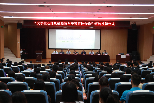 10月9日下午,我校与桂林惠宁医院“大学生心理危机预防与干预医校合作”签约授牌仪式在雁山校区图书馆报告厅举行。学校副厅级调研员张劲松出席活动,学生工作部(处)、校医院、桂林惠宁医院相关负责人,以及各学院主管学生工作的副书记、辅导员、新生班主任和心理委员参加了本次活动。