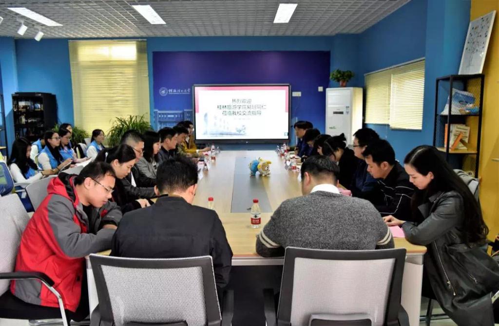 2019年3月13日下午,桂林旅游学院学生工作部(处)科长任桓熠一行到访我校易班参观交流。校学工部(处)副部(处)长张瑞在雁山校区行知楼B418会议室热情接待来访老师,网络思政科相关负责人及对口学院易班指导老师等数十人参加了此次座谈。
