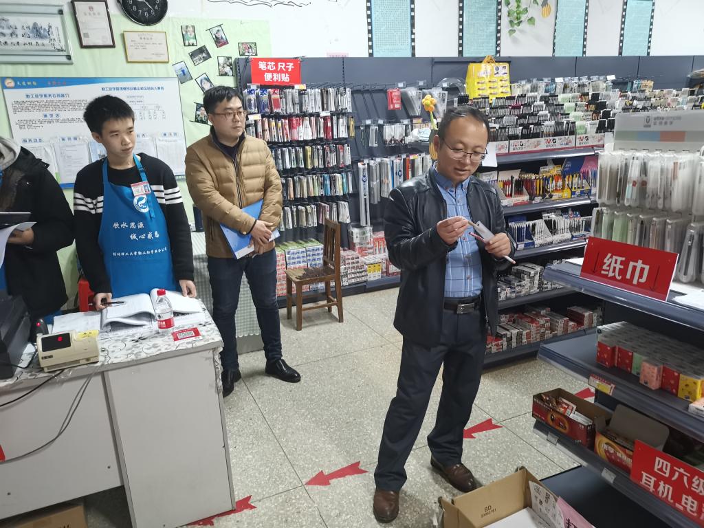 张成龙部(处)长先后走访检查了大学生活动中心至善店和雁园休闲屋及各服务超市,详细检查了各门店的安全卫生、细致的查看了各店商品的归置和大型电器设备的使用情况、电路是否老化和灭火器是否正常等情况,特别强调了在各店休息期间,务必要断电断水,同时锁好门窗,保证我们的财产安全。在检查过程中,张成龙部(处)长还详细了解了各门店的食品安全卫生、货物采购与调配、学生上岗、店面整修等方面的情况,并对检查中发现的安全隐患问题提出了相应的整改措施。
