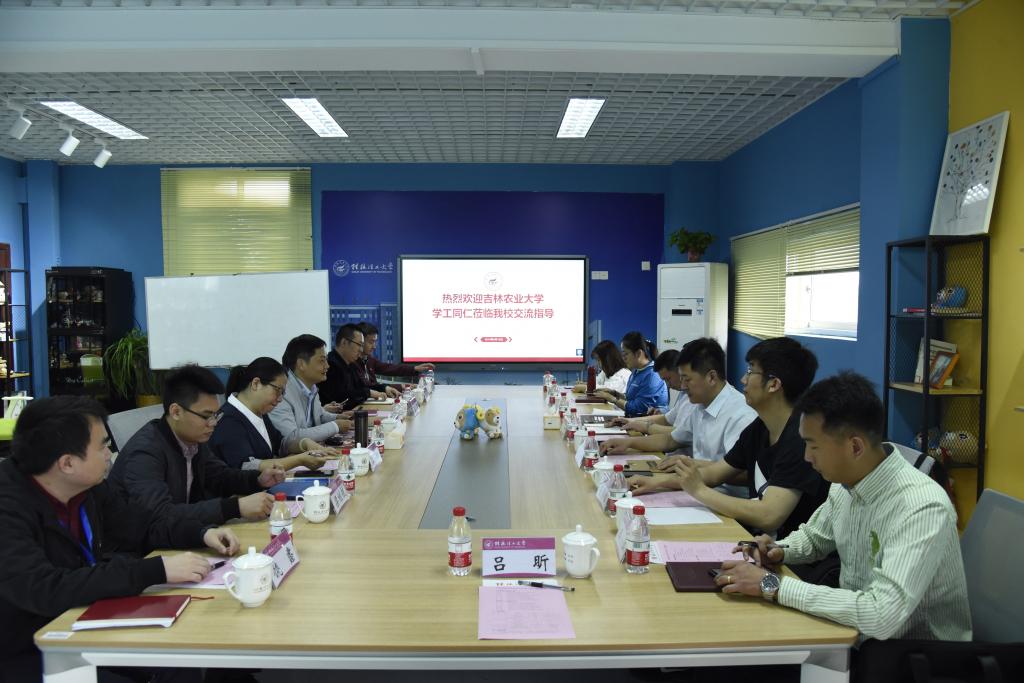 4月10日上午,吉林农业大学学生工作部(处)刘伟副部(处)长率该校学工同仁来访我校。学生工作部(处)张瑞副部(处)长在雁山校区行知楼B418会议室热情接待了来访客人,我校对口学院学工人员陪同座谈。