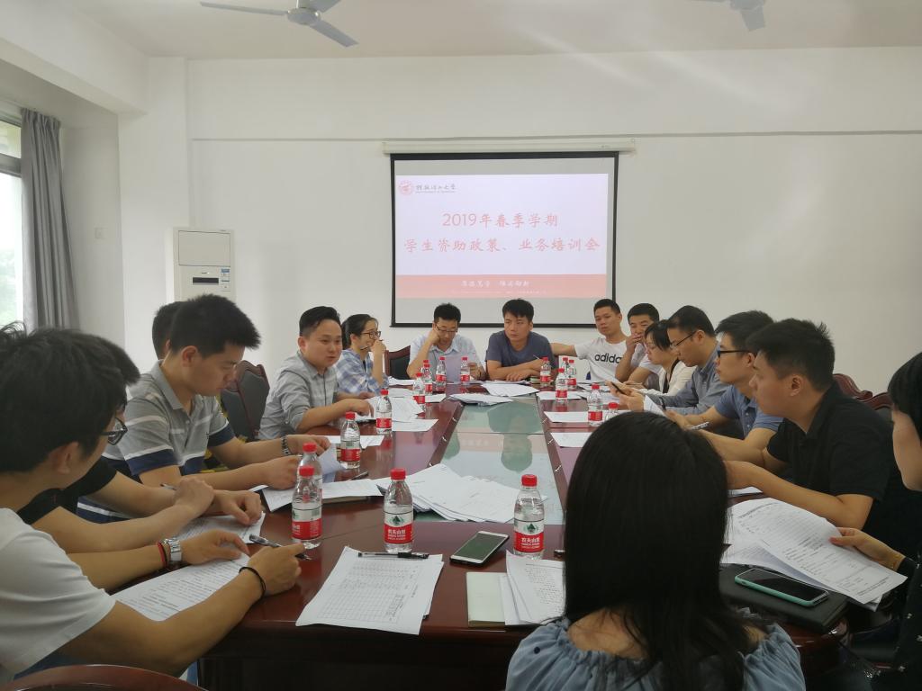 5月14日上午,学生工作部(处)资助管理中心在雁山校区行知楼B318会议室召开2019年春季学期学生资助政策、业务培训会。此次培训会由国家助学贷款办公室副主任慕宗良老师主持,学生资助管理中心工作人员及各二级学院学生资助工作专项辅导员参加了会议。