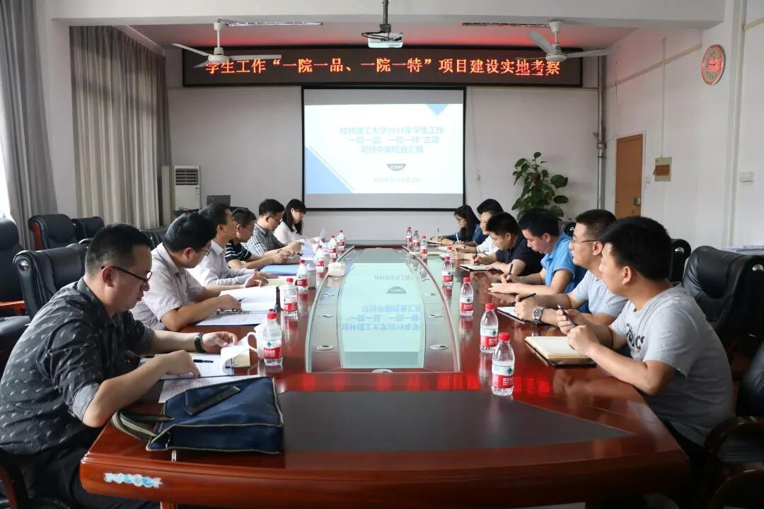 本次中期检查实行实地考察与材料审查相结合的工作模式,在材料审查环节,桂林片区高校学工处主要负责人对申报学院目前的建设规划、宣传推广、资金使用情况以及绩效目标完成情况等具体建设情况进行了深入检查。在实地考察环节中,各学院项目负责人先后对项目建设情况与成果等方面进行汇报,重点介绍建设规划、媒体推广、视频宣传、资金使用情况及创建成果以及存在问题与改进措施。考察组成员逐条按照“有典型经验、有宣传力度、有创建成果、有建设保障”的“四有”项目要求进行了细心的复查与摸排,并针对各学院面临的具体问题提出相应的工作建议。