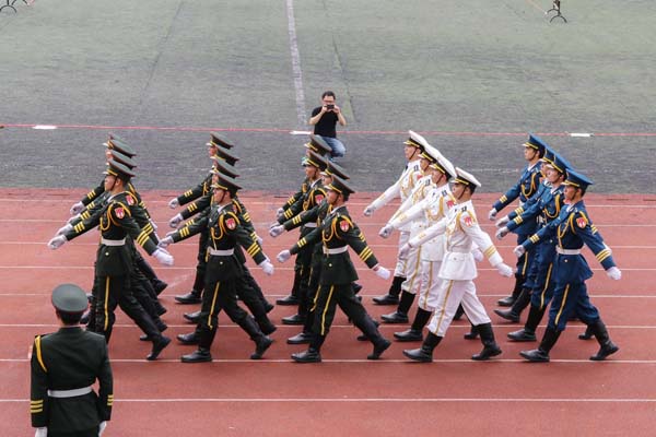 为庆祝中华人民共和国成立70周年,弘扬爱国主义精神,加强大学生爱国主义教育,提高大学生国防安全意识,6月 2日上午,由桂林市国防教育研究会主办的桂林第四届高校国旗班队列及升旗比赛在我校风雨操场举行。桂林市国防教育研究会会长、原警备区政委傅庆成出席活动,各高校国旗班指导老师及桂林七所高校国旗班全体成员参加了比赛。