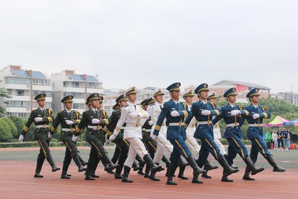 本次比赛分为队列展示和升国旗仪式两个部分,经过紧张激烈的比拼,我校国旗班获得此次比赛的冠军,国旗班谢雨、梁川和王冕三位同学荣获“最佳旗手”荣誉称号,韦覃乐同学荣获“先进个人”荣誉称号。