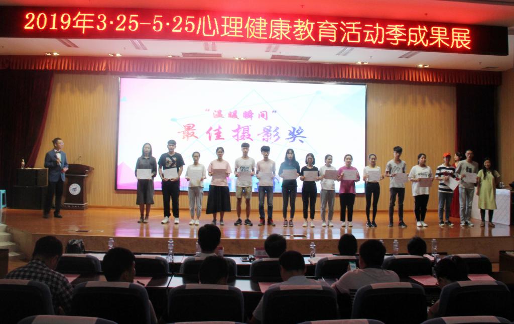 2019年6月19日15:30,学校首届“3.25-5.25心理健康教育活动季”成果展在雁山校区图书馆报告厅举行。学生工作部(处)张成龙部(处)长、张瑞副部(处)长以及各学院党委副书记出席了本次活动,心理咨询中心全体专职教师、各学院学工组长、负责心理健康教育的辅导员及心理委员代表参加了本次活动。