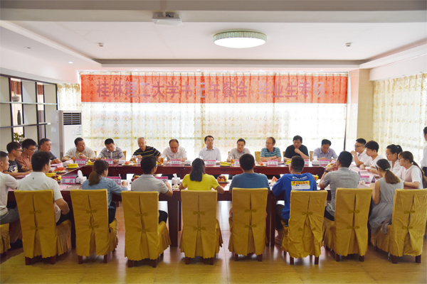 为热烈欢送2019届毕业生,听取学生对学校改革发展的意见建议,6月20日中午,学校在雁山校区雅诺主题实验餐厅举行书记午餐会(2019届毕业生专场)。学校党委书记李国忠、副厅级调研员张劲松,相关职能部门负责人及优秀毕业生代表参加了本次午餐会。午餐会由副厅级调研员张劲松主持。