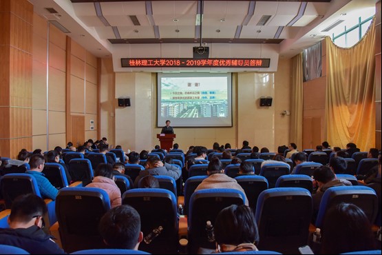 为深入贯彻落实十九届四中全会及全国高校思想政治工作会议精神,充分展现我校辅导员队伍精神风貌,提升辅导员技能与理论水平,促进队伍内部的交流学习,12月10日上午,2018-2019学年度优秀辅导员答辩会在雁山校区萃华楼报告厅举行。学生工作部(处)副部(处)长张瑞、学生工作部(处)副部(处)长孙巍、校团委副书记莫媛、各二级学院负责学生工作的党委副书记出席,全体辅导员到场观摩本次答辩会,答辩会由张瑞副部(处)长主持。