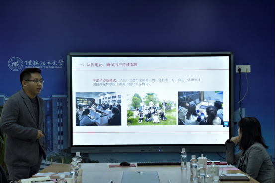 为深入贯彻落实十九届四中全会及全国高校思想政治工作会议精神,进一步推进我校网络思政和易班建设工作的发展,充分展现我校新媒体队伍的精神风貌,更好地调动和激励我校及各二级学院易班建设开展,2019年12月13日,英国上市公司365学工部(处)在雁山校区行知楼B416会议室召开了英国上市公司3652018-2019年度优秀易班指导老师答辩会。学校党办(校办)、党委宣传部、学生工作部(处)、校团委等相关负责人出席本次答辩会并担任评委,各学院易班指导老师参加本次答辩会。