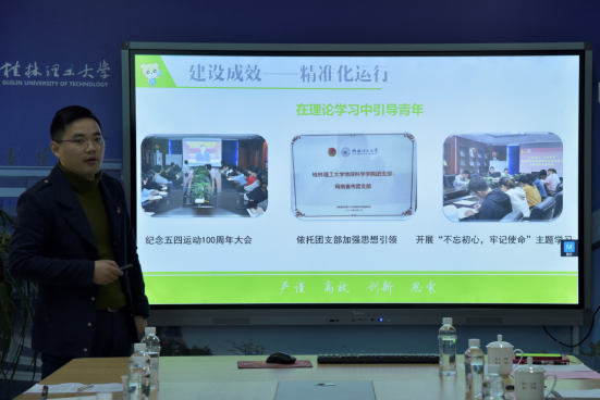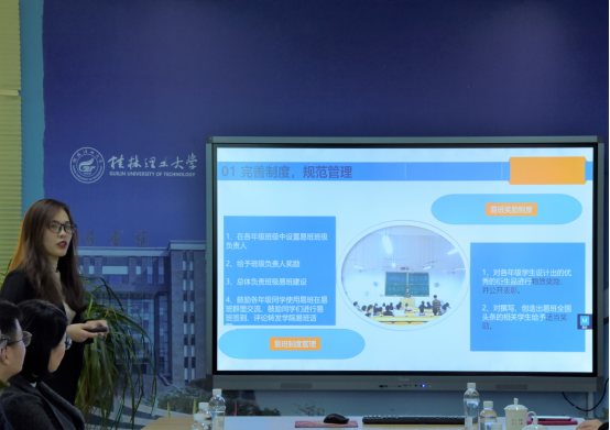 根据《广西高校易班建设工作规划(2017-2020年)》文件要求,我校制定了相应的二级学院易班学生工作站考核管理办法(试行)。进入答辩考核环节的易班指导老师依据考核管理办法对指导方法、指导实效、个人易班建设等方面进行答辩,着重介绍一年以来指导易班工作的具体做法以及成效,评委依据答辩结果及综合成效来评选出五名"年度优秀易班指导老师"。答辩会上,进入答辩考核环节的易班指导老师展示了2018-2019年度二级学院易班建设的工作特色和亮点,对队伍建设、内容建设、平台建设等方面工作进行汇报。