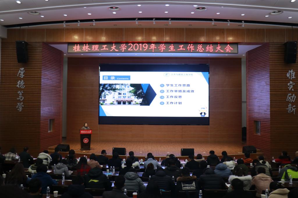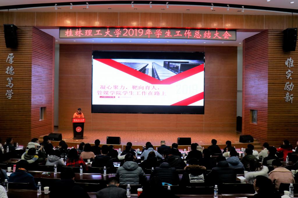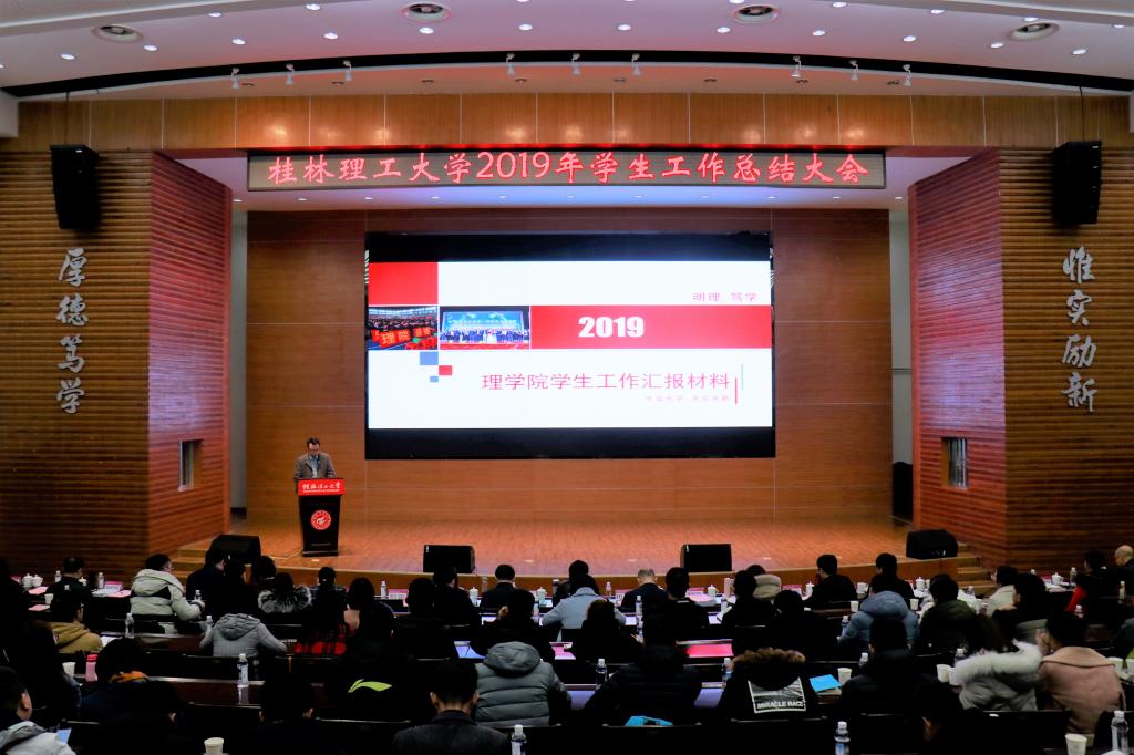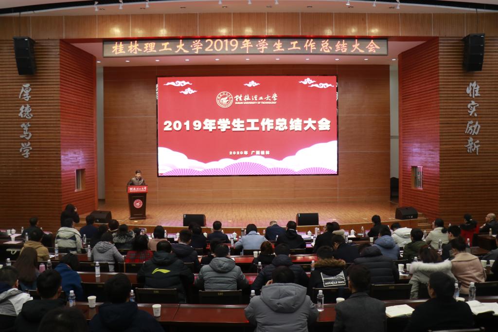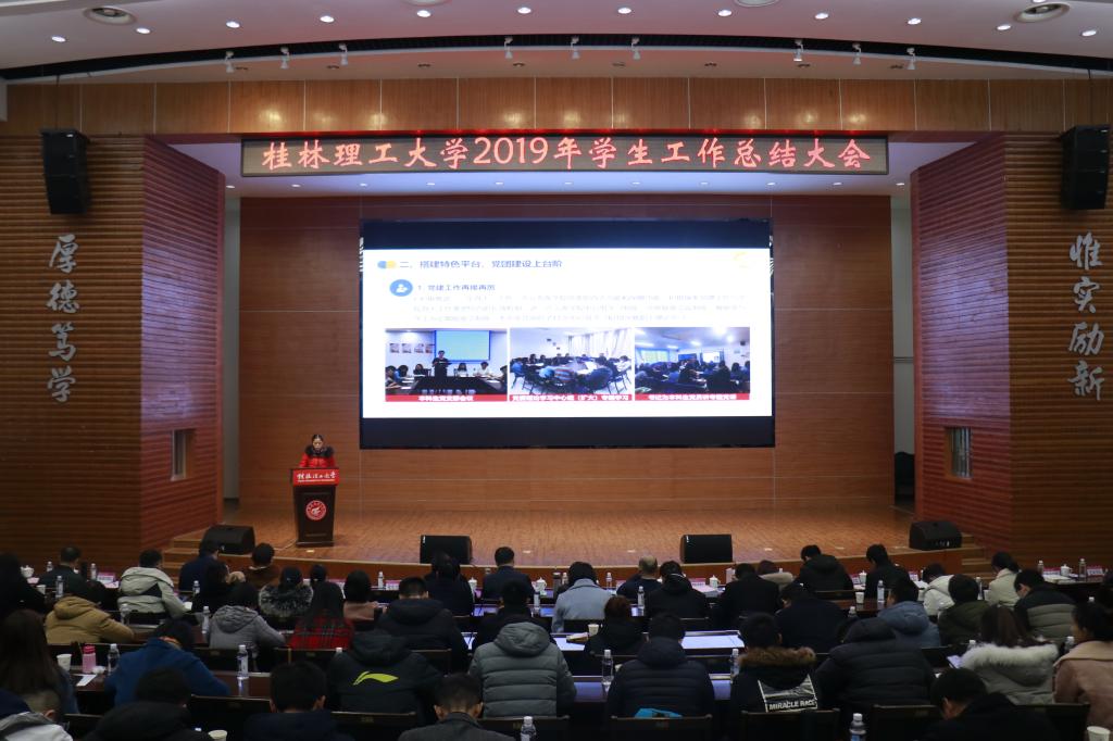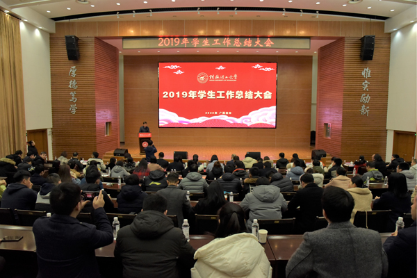 会上,校团委相关负责人作2019年共青团工作总结,主要围绕青年学生思想引领、基层团组织建设、实践育人工作、第二课堂品牌培育等四个方面进行汇报。学生工作部(处)相关负责人作2019年学生工作总结,围绕六个方面进行汇报:一是加强党的建设,不断增强党员干部干事创业本领;二是强化价值引领,积极涵养平安和谐的育人环境;三是创新方式方法,着力构建“学在桂工”学风建设新体系;四是坚持以生为本,不断推动管理服务精细化发展;五是夯实团队建设,全面提升辅导员队伍专业化职业化水平。会上学生工作部与校团委分别发布了2020年重点工作计划,明确了下一年学校学生工作与共青团工作新思路新战略。