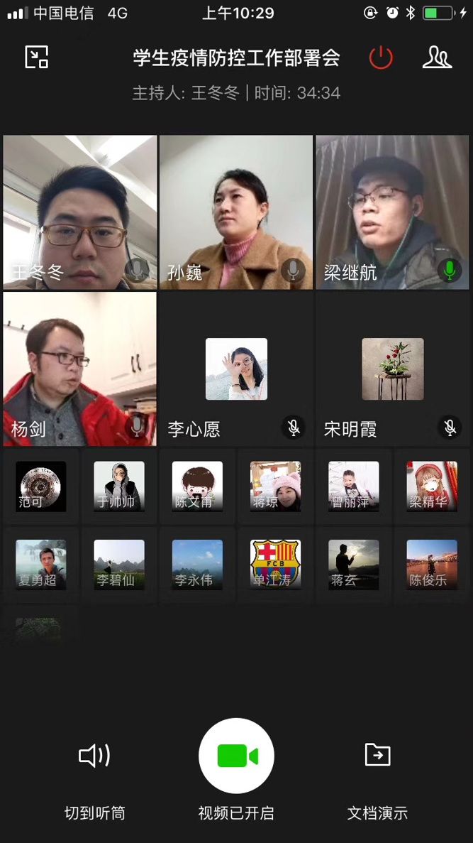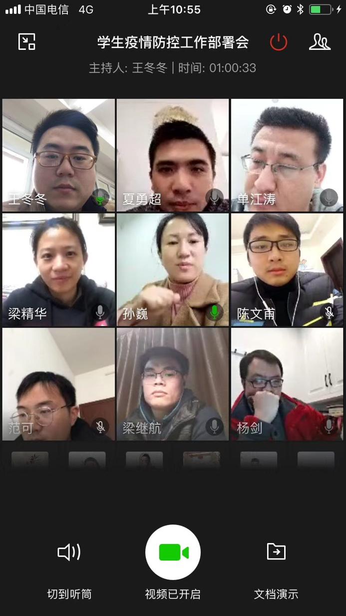 为深入学习贯彻落实2月14日教育部应对新冠肺炎疫情工作领导小组会议纪要重要精神,进一步落实学校疫情防控各项工作,2月21日上午,学工处召开2020年春季学期学生疫情防控工作部署网络视频会议,学工处副处长孙巍及各二级学院学工组长参加了会议。