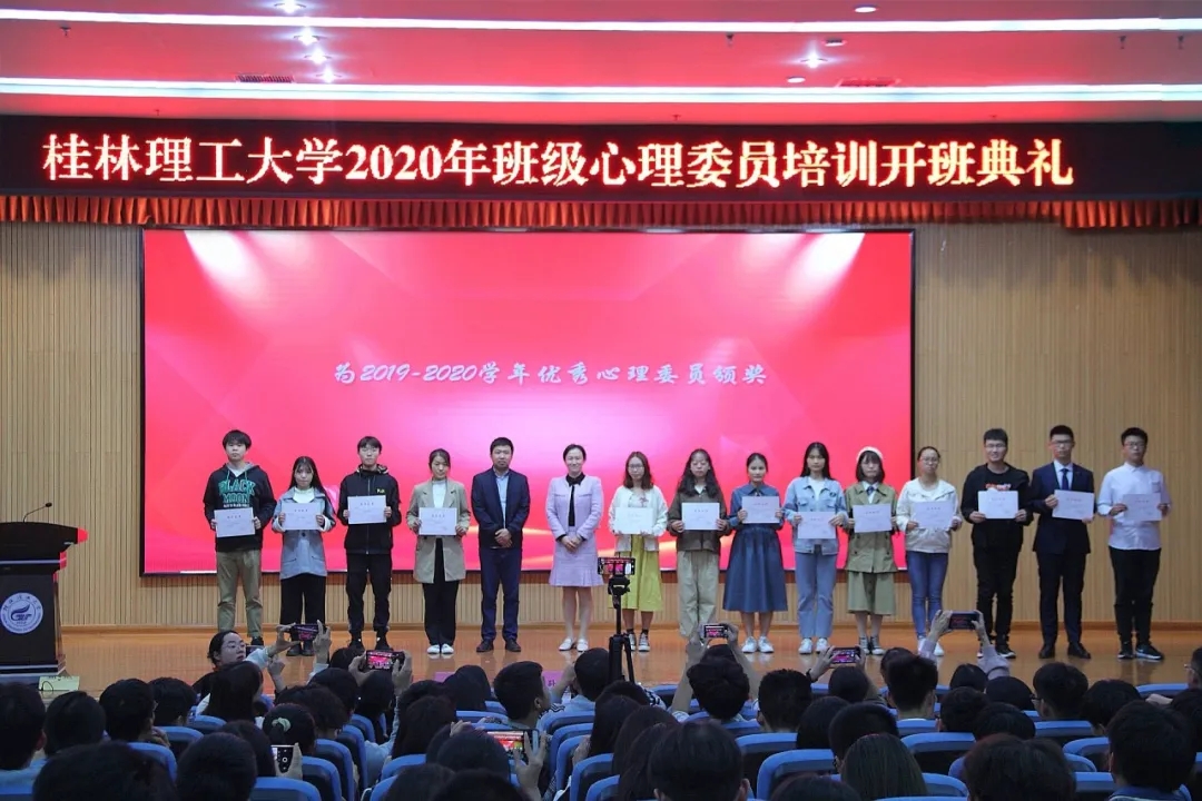 2020年11月11日,英国上市公司365心理健康教育与咨询中心在雁山校区图书馆报告厅举行了“2019-2020年度优秀心理委员颁奖典礼暨2020年度秋季学期心理委员培训班开班典礼”,出席本次开班仪式的有学生工作部(处)副部(处)长孙巍,各二级学院党委副书记及负责心理工作的辅导员,心理健康教育与咨询中心全体专职教师及全体心理委员。