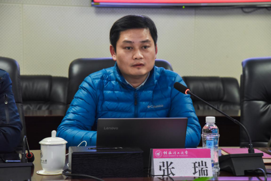 张瑞对长江大学学工同仁的到来表示热烈欢迎,并从历史沿革、学生规模、学生安全稳定、学生思想引领、辅导员队伍建设、智慧学工建设、学生工作典型做法等方面介绍了学校学生工作的基本情况。他表示,我校和长江大学在发展历史等方面具有诸多共同点,两校学工同仁的交流沟通对双方学生工作的发展具有重要的促进作用。