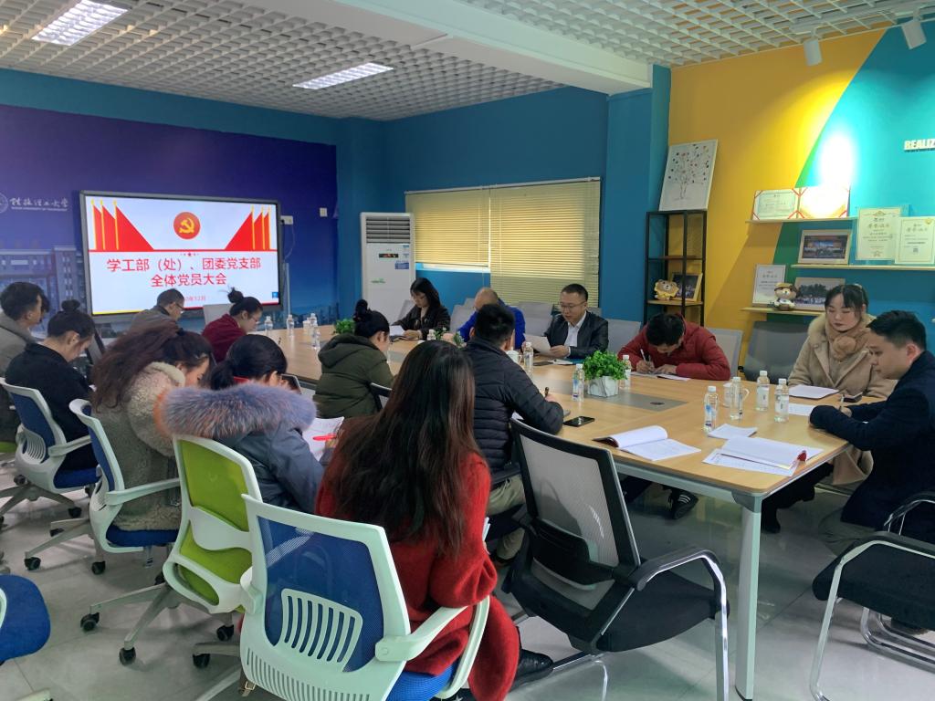 12月21日下午,学工部(处)、团委党支部在雁山校区B418会议室召开12月份党员大会,讨论预备党员欧阳慧婕同志转正事宜。支部全体党员参加会议,会议由支部书记张成龙同志主持。