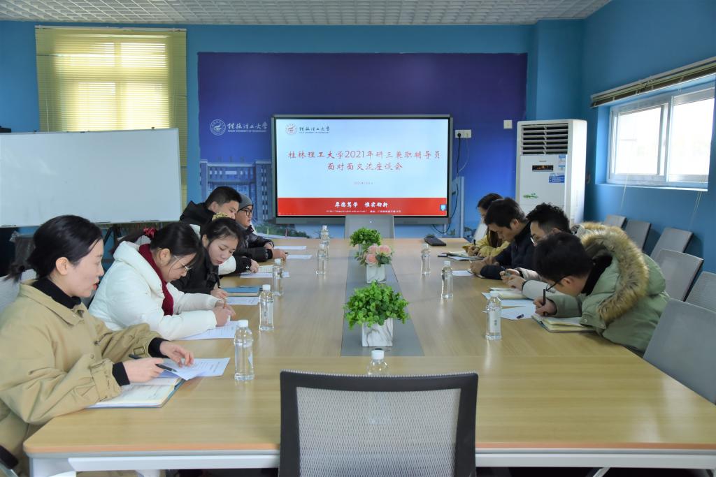 为深入解我校研三兼职辅导员工作现状,进一步加强兼职辅导员队伍建设,1月8日下午,我校在雁山校区行知楼B418会议室召开了2021年研三兼职辅导员面对面交流座谈会,学工部(处)副部(处)长张瑞出席座谈会并讲话,学工部(处)思想教育科相关工作人员和研三兼职辅导员参加会议。