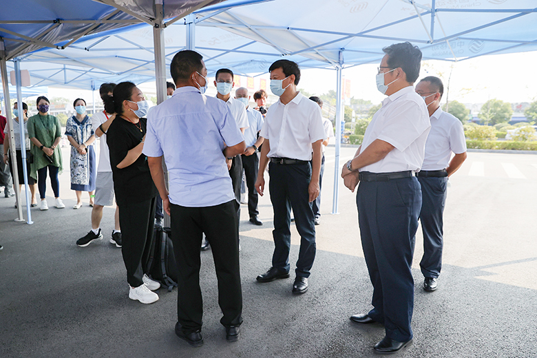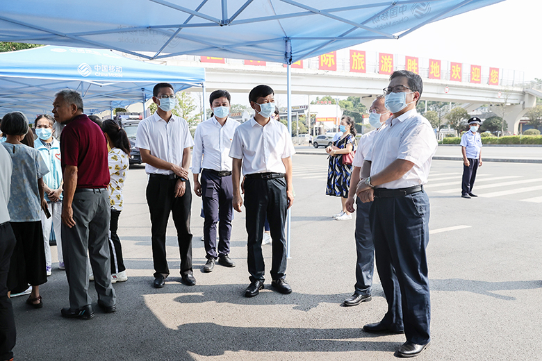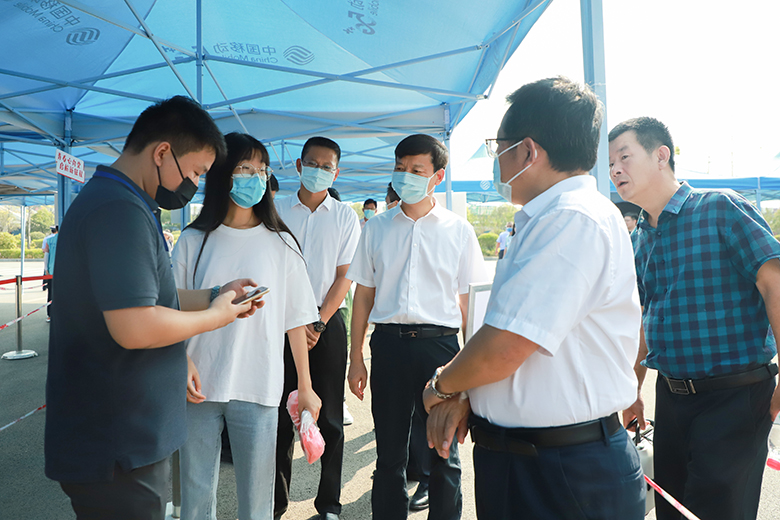 在各学院迎新接待点,校领导一行检查了学校“绿色通道”设置及办理情况,看望了坚守岗位的迎新志愿者和工作人员,详细了解迎新工作进展和新生报到情况,对学院有条不紊开展迎新工作给予充分肯定,对工作人员的辛苦付出表示衷心感谢,并提醒大家注意防暑,以良好的精神面貌、热情周到的服务迎接新生的到来。