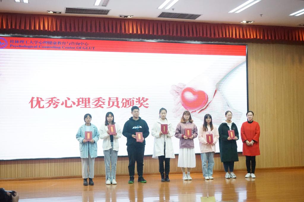 为进一步加强我校班级心理委员建设,表彰先进,完善心理健康教育“四级预防网络体系”,提升心理育人工作质量,提高大学生心理素质水平。学生工作部(处)于2021年11月2日在雁山校区图书馆报告厅举办了“2020-2021学年优秀班级心理委员表彰大会暨2021年新任班级心理委员培训开班典礼”。学生工作部(处)负责人、各二级学院分管学生工作的党委副书记、负责心理工作的辅导员、心理健康教育与咨询中心全体专职教师、2020-2021学年优秀班级心理委员代表,以及2021年所有新任心理委员出席了表彰大会暨开班典礼。