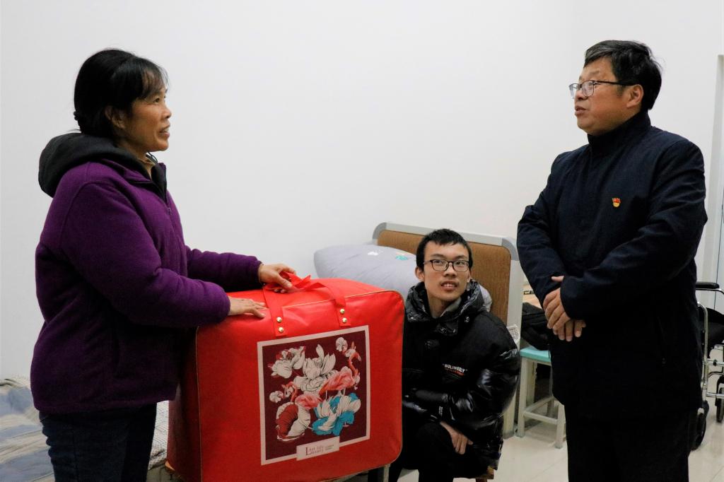 发放“暖冬大礼包”是我校资助家庭经济困难学生“暖冬计划”系列活动举措之一。学校学生资助管理中心前期通过仔细了解我校家庭经济困难学生需求,并为有需求的学生采购了优质的棉被和褥子。在走访慰问现场,吴志强为受资助学生亲手送上“暖冬大礼包”,并与他们进行了亲切交谈,详细询问了同学们在生活、学习上的基本情况,鼓励同学们树立信心,克服困难,努力学习,立志成才。