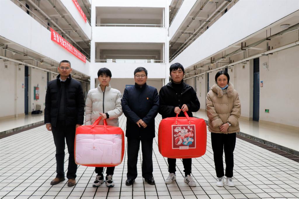 为进一步做好对家庭经济困难学生的帮扶工作,让同学们在寒冬中感受到学校浓浓的关爱,12月27日中午,学校党委副书记吴志强带领学生工作部(处)负责人、相关学院党委副书记、年级辅导员来到学生宿舍走访慰问,为有需要的家庭经济困难学生送上包含有爱心棉被和褥子的“暖冬大礼包”。
