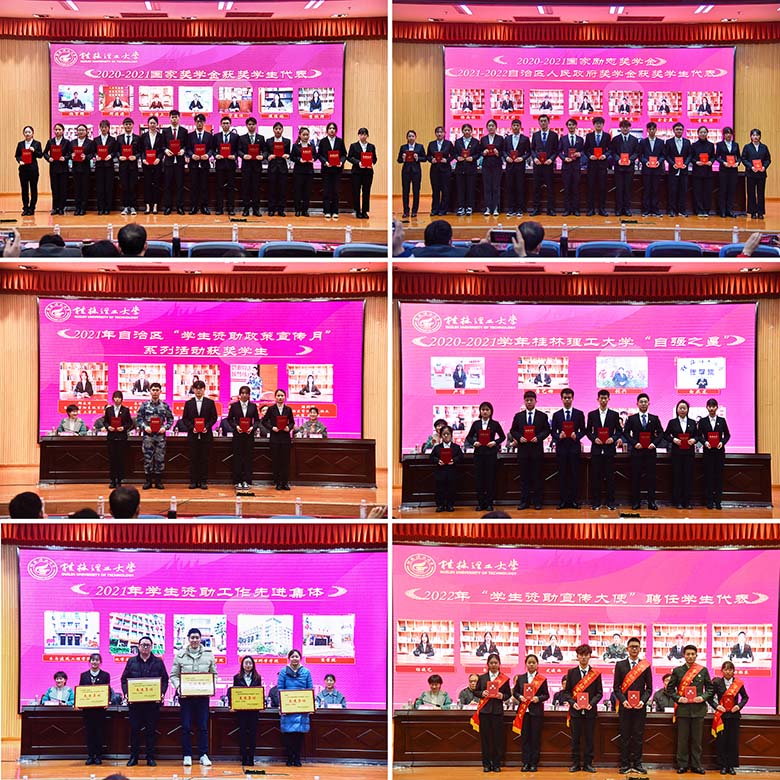 随后,与会领导为2020-2021学年度国家奖学金、国家励志奖学金、2021-2022学年度自治区人民政府奖学金获奖学生代表、2021年自治区“学生资助政策宣传月”系列活动获奖学生、2020-2021学年度英国上市公司365“自强之星”和2021年度学生资助工作“先进集体”颁奖,并颁发了2022年度学校学生资助宣传大使代表聘书。