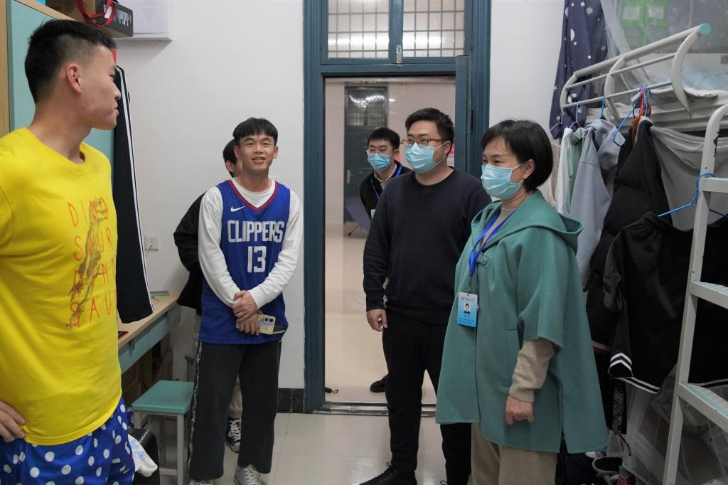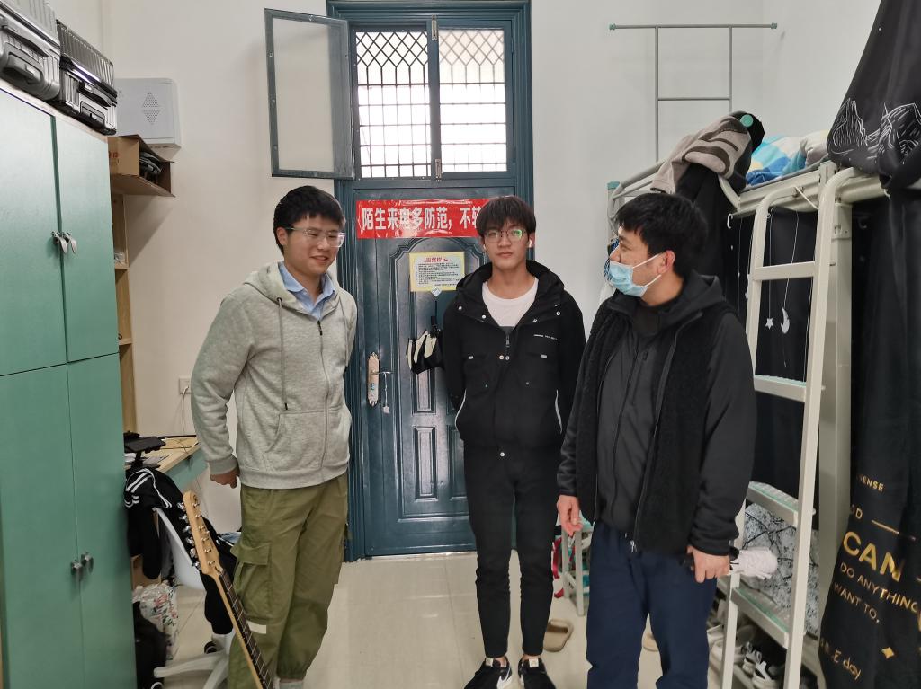 学工部(处)副部(处)长孙巍带领学生管理科检查了部分学生宿舍,并与宿舍学生亲切交流,了解同学们的学习、生活、思想动态,叮嘱同学们要加强安全防范意识,时刻绷紧安全这根弦,春季天气潮湿,要严防电线短路和火灾事故的发生,同时要加强宿舍内务卫生建设,自觉遵守学校规章制度,营造良好的宿舍文化氛围。
