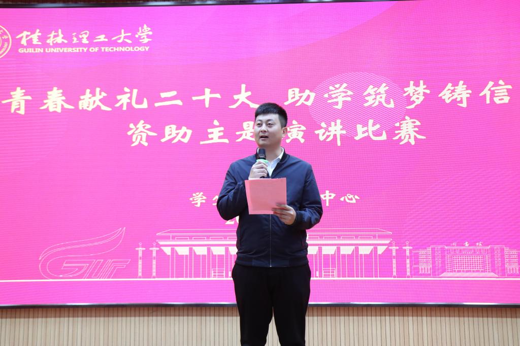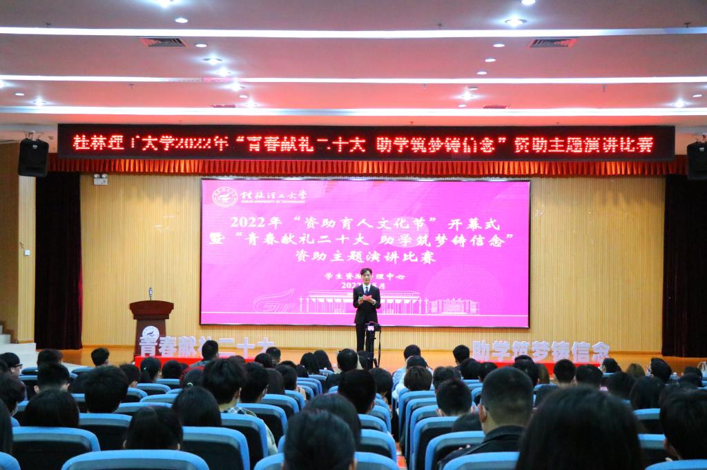 为积极营造喜迎党的二十大的浓厚氛围,培育受助学生的爱党爱国情感和感恩意识,进一步加大学生资助政策宣传力度,5月15日,学校在雁山校区图书馆报告厅举办2022年“资助育人文化节”开幕式暨“青春献礼二十大 助学筑梦铸信念”资助主题演讲比赛。学生工作部(处)副部(处)长孙巍出席比赛并致辞,校友办、团委等相关职能部门老师担任评委,学生资助工作办公室全体干部、各二级学院学生资助工作专项辅导员及学生代表共计230人观看了比赛。