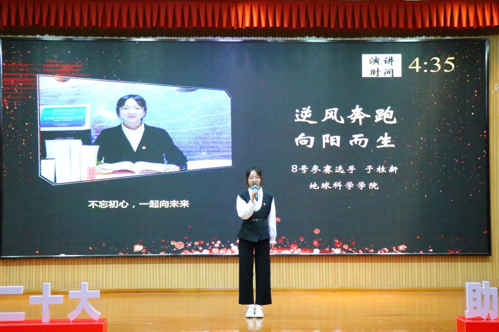 比赛中,14名参赛选手紧紧围绕“青春献礼二十大 助学筑梦铸信念”这一主题,结合个人实际情况,用鲜活的例子和饱满的热情讲述自己在国家资助政策支持下的成长故事,充分展现了受助学生爱党爱国、奋发向上、立志成才的良好精神风貌。经过激烈的角逐,公共管理与传媒学院莫淑桦、机械与控制工程学院霍灏、地球科学学院于桂新脱颖而出,荣获一等奖;旅游与风景园林学院欧思堰等4名同学荣获二等奖,土木与建筑工程学院李柳诗等7名同学荣获三等奖。比赛结束后,田明浩老师从参赛选手的选题、演讲内容、表达技巧、精神面貌等方面进行了详细点评。