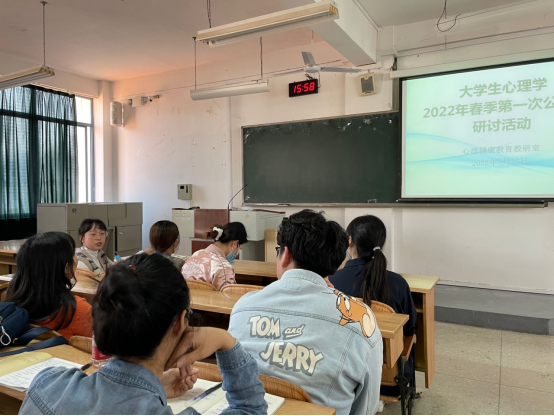 为进一步调动教研室老师的教学积极性,推进课堂教学改革,促进相互学习与交流,不断提高教师队伍的素质和教学水平,心理健康教育教研室于5月16日下午第五节课在06408D开展了本学期第一次《大学生心理学》公开示范课观摩活动。本次公开课由邓洁琼老师主讲,主题为“大学生积极自我意识的培养”,本学期的授课教师以及预承担心理学教学任务的部分教师参加了本次活动。