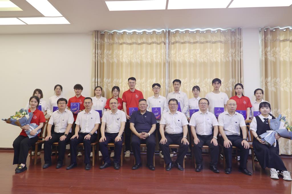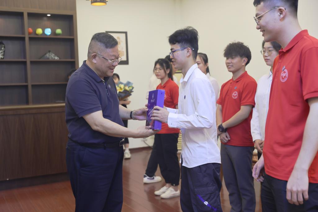 会后,邓军为毕业生基层就业代表赠送了纪念品并合影留念。