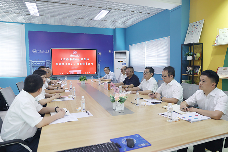 邓军首先考察了学生工作部(处)、团委全国样板党支部工作平台,并对学校易班发展中心进行了实地考察。随后,分别听取了学生工作部(处)、团委推进学生工作、共青团工作的主要做法、特色亮点以及工作建议的汇报,对学生工作部(处)、团委近年来落实立德树人根本任务,推进各项工作的目标、思路、举措以及作出的重要贡献表示充分肯定。