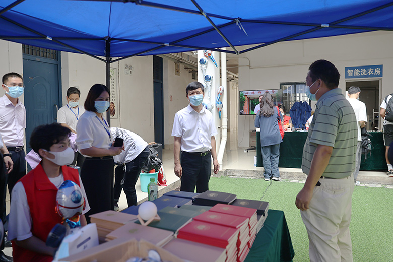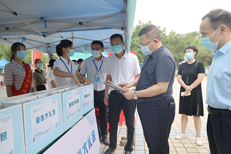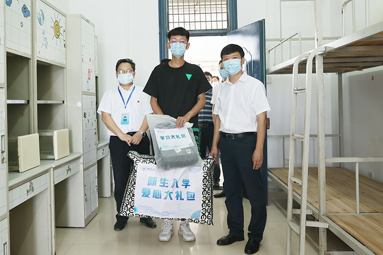 检查过程中,邓军还来到新生入学“绿色通道”,了解学校“绿色通道”办理情况,与家庭经济困难新生亲切交谈,勉励他们克服困难、自立自强、刻苦学习、回报社会,并为学生发放爱心大礼包。