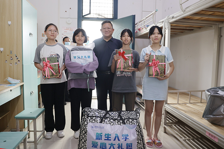 邓军书记为黄丽君同学和舍友赠送新生入学爱心大礼包