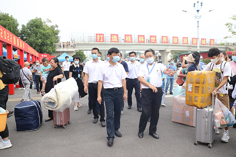 踔厉奋进启新程,笃行不怠向未来。9月12日,是我校2022级新生集中报到第一天,来自全国各地的新桂工人陆续到校,在这里开启他们的人生新篇章。学校党委书记邓军、校长解庆林、党委副书记吴志强、副校长周国清分别来到雁山、屏风两校区现场检查指导迎新工作,并亲切看望报到入学的新生,慰问参与迎新工作的师生员工。学校各相关职能部门负责人参加检查。