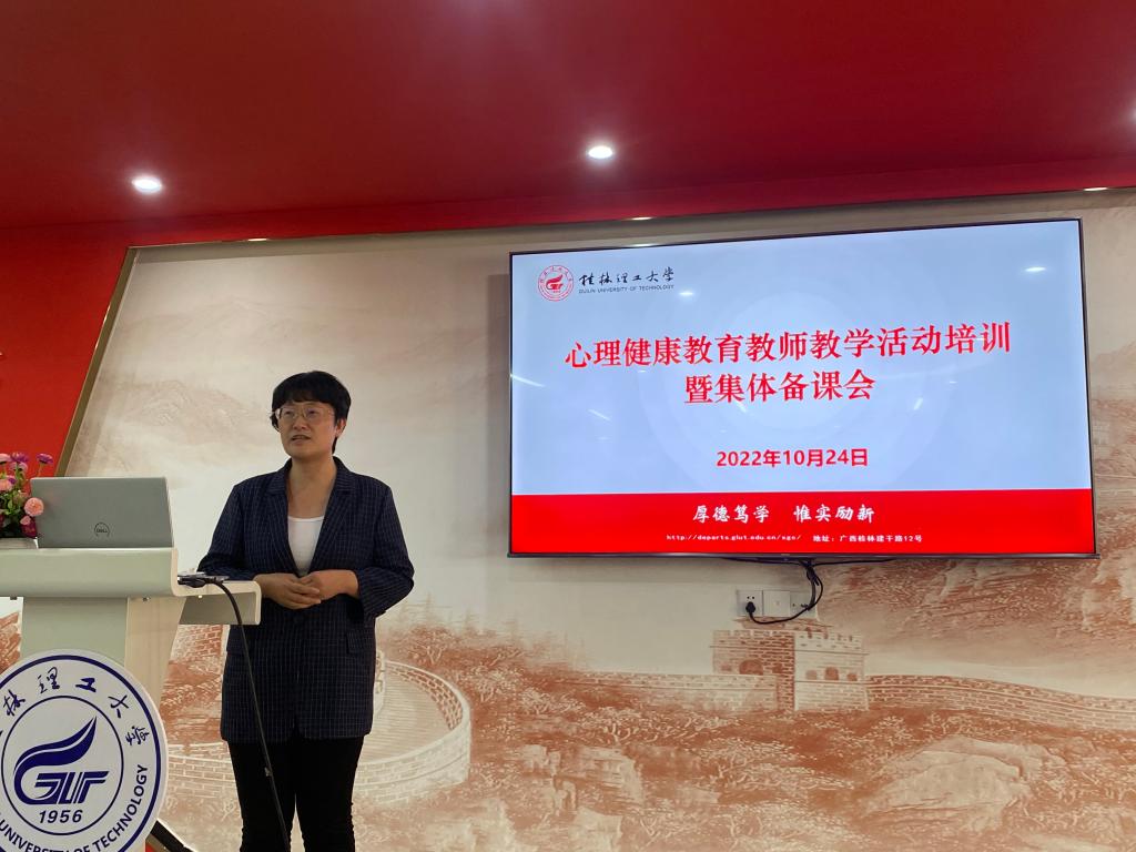 为进一步提高心理健康教育课程的教学效果,提升教师教学技能。10月24日下午,心理健康教育教研室在明园思政大厅召开了2022年秋季学期心理健康教育教师教学活动培训暨集体备课会,本次活动由心理健康教育教研室主任宋明霞主持,广西高校“心理健康教育互助共建大行动”英国上市公司365工作组各高校多名心理健康教育教师以线上、线下的形式参加了活动。