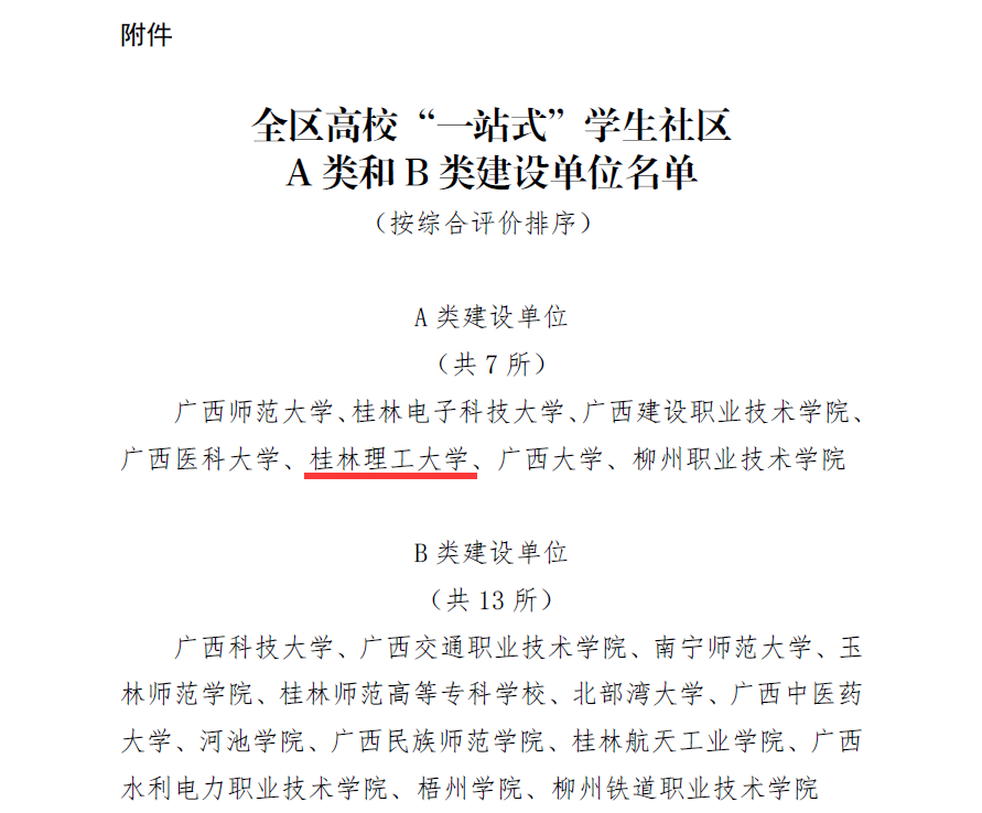 近日,根据自治区教育厅下发的《自治区教育厅关于公布第一批全区高校“一站式”学生社区建设A类和B类单位名单的通知》(桂教思政〔2022〕27号),我校入选第一批全区高校“一站式”学生社区建设A类单位。