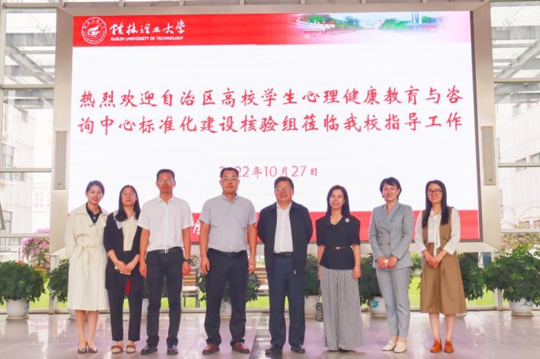 10月27日,全区高校大学生心理健康教育专家指导委员会专家、桂林医学院副院长马献力一行3人到我校就高校学生心理健康教育与咨询中心标准化建设情况进行实地核验。工作汇报会在行知楼A201会议室召开。学校党委副书记吴志强出席并讲话。学工部(处)负责人及心理健康教育与咨询中心全体成员参加迎检工作。