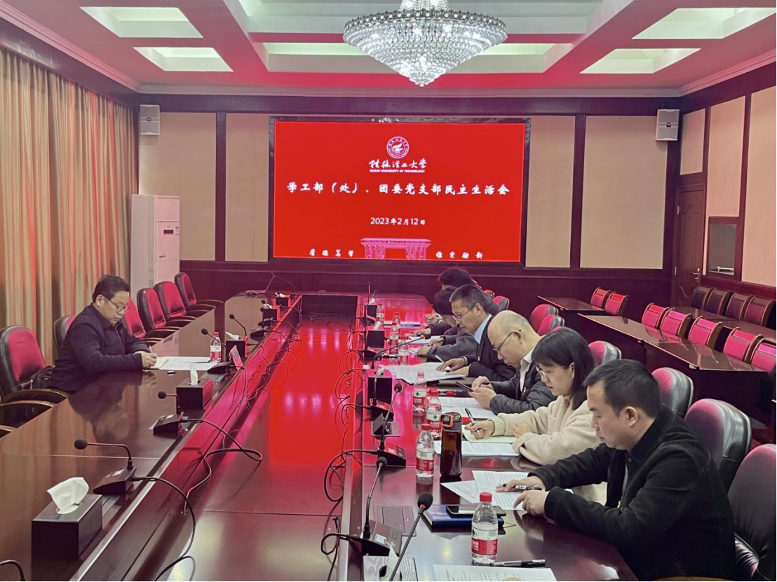 2月12日下午,学工部(处)、团委党支部在屏风校区教八楼三楼会议室召开2022年度党员领导干部民主生活会。会议以全面贯彻习近平新时代中国特色社会主义思想,深刻领悟“两个确立”的决定性意义,增强“四个意识”、坚定“四个自信”、做到“两个维护”,团结带领党员干部群众以奋发有为的精神贯彻落实党的二十大作出的重大决策部署为主题,联系实际、针对问题、触及思想,认真开展批评与自我批评,并明确整改措施和努力方向。学校党委副书记吴志强到会指导,学工部(处)、团委领导班子、支部支委参加会议,会议由支部书记冯广辉同志主持。