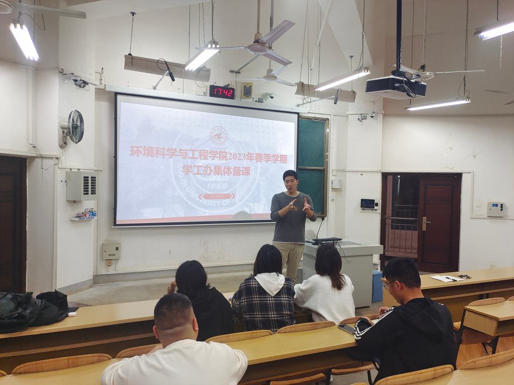 为不断深化晚教育教学改革创新,高质量上好大学生成长成才课,4月9日下午,环境科学与工程学院党委副书记郝文佳在04621室组织学院全体专兼职辅导员开展了集体备课活动。