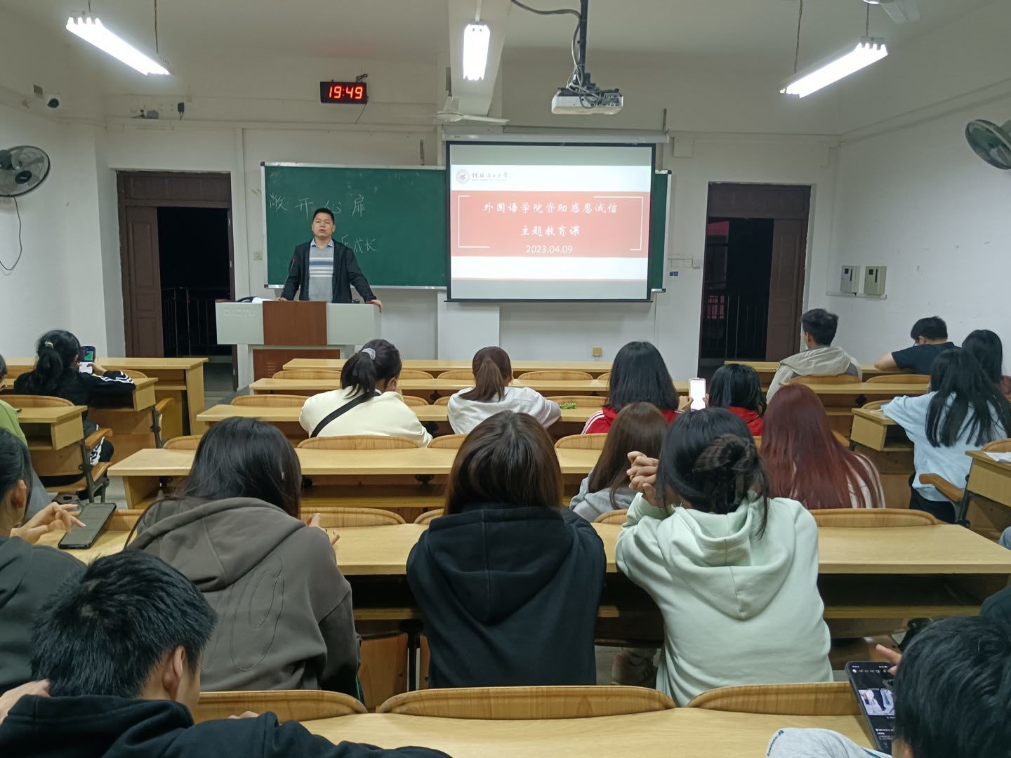 为切实做好高校学生资助政策宣传工作,增强大学生感恩诚信意识,4月9日,外国语学院依托大学生成长成才课开展了全院学子同上一堂资助感恩诚信教育课。课程由各年级辅导员主讲,学院全体学生到场参加。