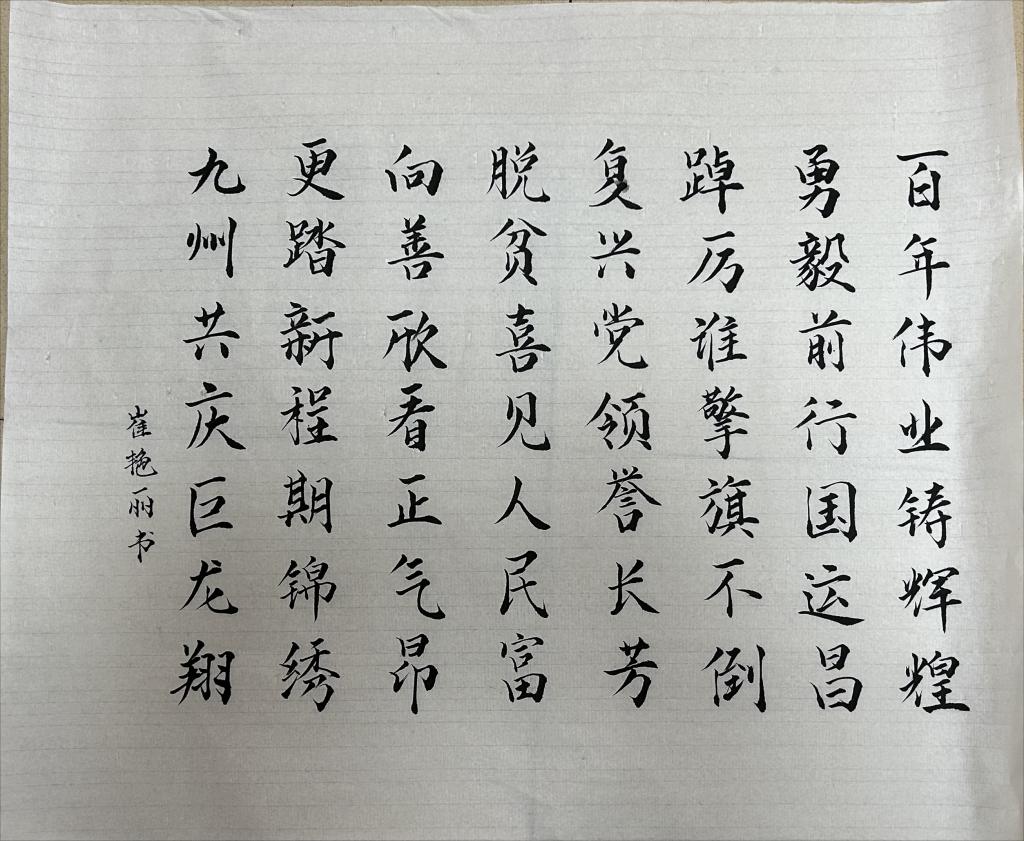 本次书法作品征集比赛以学习贯彻党的二十大精神、全国两会和全国教育工作会议精神为主线,突出感恩祖国、教育扶贫、资助育人等主题,并由材料科学与工程学院学生工作领导小组全体成员进行评审。据了解,比赛共评选出硬笔、软笔等书法作品11件,其中一等奖1名,二等奖2名,三等奖3名,优秀奖5名。除线下展示外,学院还将遴选优秀作品进行线上展示,进一步扩宽学院资助宣传渠道。