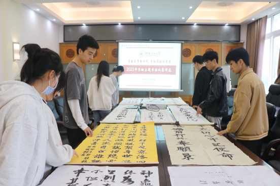 为大力宣传国家资助政策及成效,切实做好学生资助工作,讲好中国学生资助故事,激励广大受助学生奋发自强、立志成才、感恩回馈、报效国家,结合2023年学校“资助育人文化节”活动安排,5月12日,材料科学与工程学院在屏风校区2304举办“青春筑梦新时代 资助伴我向未来”资助主题书法比赛现场评选暨书法展。
