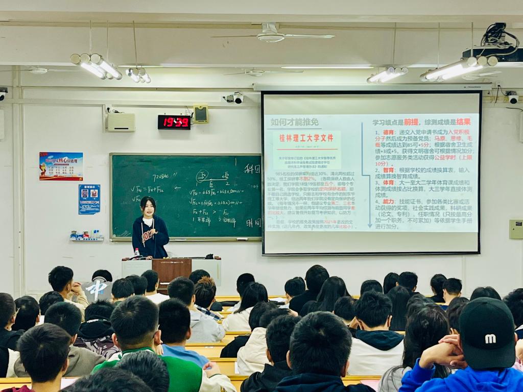 “明确自己的人生目标和方向,一步一个脚印,脚踏实地地走好每一步。”在报告会上,徐含睿紧紧围绕资助政策对个人求学的影响,从专业学习、科研竞赛、学生活动等方面讲述自己获得国家奖学金以及的推免历程,并向大家讲解普及了推免的要求以及相关流程,现场的同学们受益匪浅。在分享尾声,面对同学们的热情提问,徐含睿同学结合自身实际,向同学们强调了基础专业知识以及英语四六级的重要性,鼓励大家勇攀科研高峰,创造属于自己的不凡成绩。