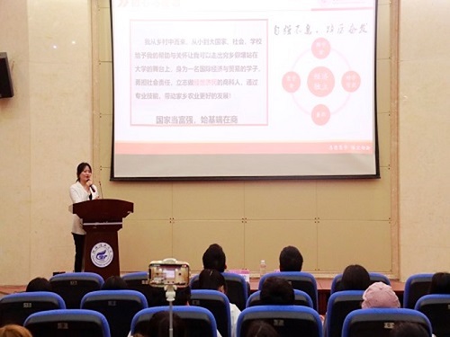 报告会上,唐艺珊、林诗晴均结合自身实例,围绕思想道德品质、学习成果、工作实践、荣誉奖励等方面,讲述了她们在面对困境和挫折时的积极应对、勇于拼搏的奋斗历程,积极参与社会实践、热情服务社会的志愿活动,弘扬道德品质、努力学习专业知识和技能等方面的自强事迹,积极传递自强不息的品质与作风。最后江苏维总结发言,他结合商学院资助育人实际对本次活动的意义进行了进一步的阐述,并对同学提出三点希望:一是要保持积极向上的人生态度,奋发向上,在逐梦路上坚定前行;二是要勤奋刻苦,苦学不辍,不断提升自己的知识和技能,成为一名本领过硬的新时代青年;三是要坚定理想信念,以青春之我,创建青春之国家。